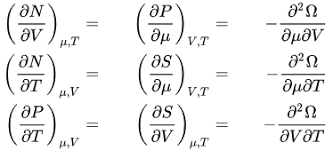La estructura de las relaciones de Maxwell es una declaración de igualdad entre las segundas derivadas para funciones continuas. A partir del hecho que el orden de diferenciación de una función analítica de dos variables es irrelevante (teorema de Schwarz). En el caso de relaciones de Maxwell, la función a considerar es un potencial termodinámico xi y xj es dos variables naturales diferentes para ese potencial: